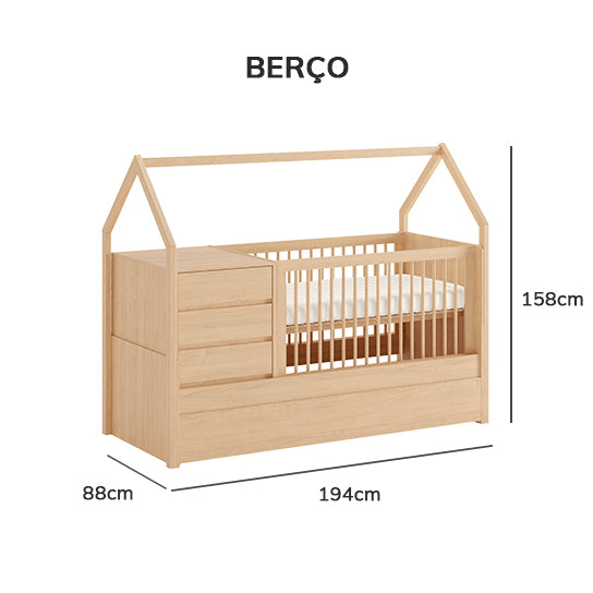 Berço Go Com Casinha Multifuncional 6 em 1 - Carvalho