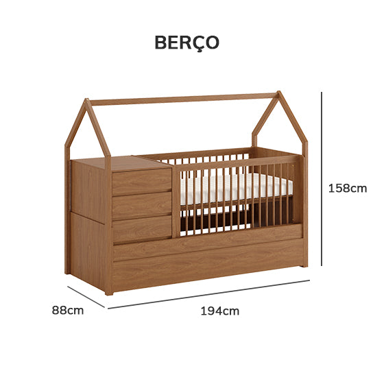 Berço Go Com Casinha Multifuncional 6 em 1 - Freijó