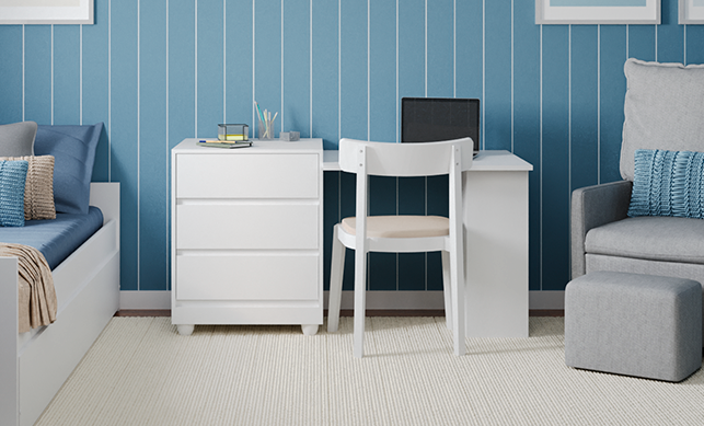 • Multifuncional! O berço tem embutido a cômoda e a cama auxiliar e acompanha o crescimento do bebê com a transformação para cama, nicho, mesa lateral e até em uma escrivaninha.