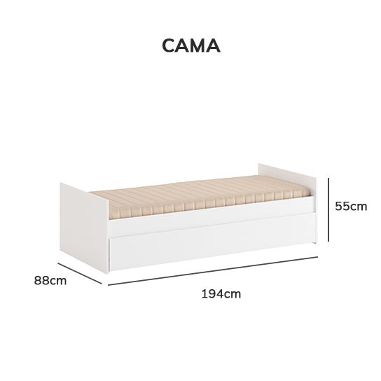• Colchão Cama Auxiliar 78X188X14cm (máx);