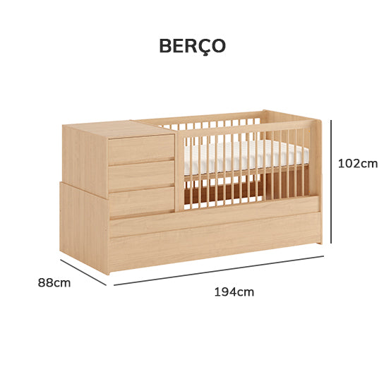 Berço Go Multifuncional 6 em 1 - Carvalho