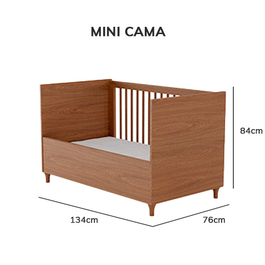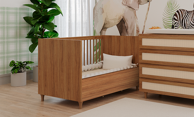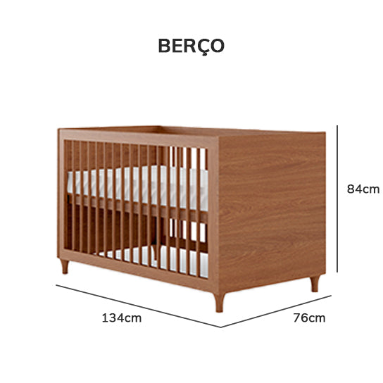 O Berço Haus Nature é multifuncional. Seu estilo moderno combinado ao design discreto e cor freijó permite que seja usado para quartos de menino e menina com estilo moderno. Possui: