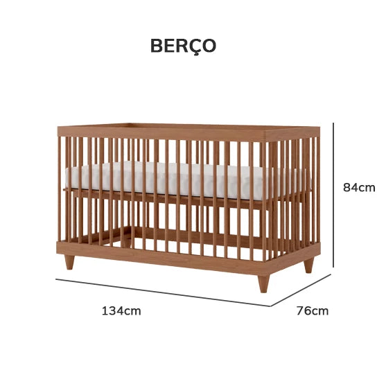 O Berço Haus Nature Freijó Palitado é multifuncional 3 em 1. Seu estilo sofisticado combinado ao design discreto e atemporal na cor freijó permite que seja usado para quarto de bebê de menino ou menina com estilo moderno. Possui: