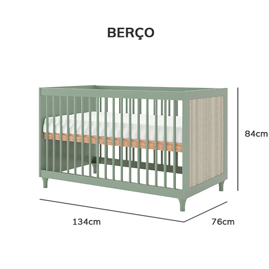 Berço Haus Nature Com Palha 3 em 1 - Verde Jardim