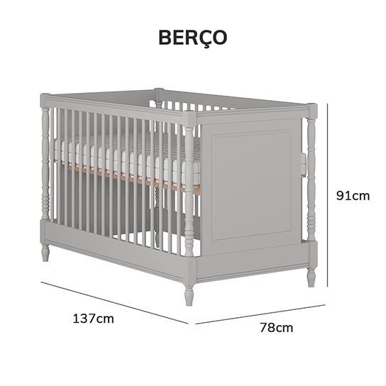 O Berço Monet Greige é multifuncional 3 em 1. Traz um design que une o estilo clássico, sofisticado e atemporal. Sua cabeceira e peseira fechadas conferem um visual elegante e acolhedor, adicionando charme ao móvel. Os pés torneados em madeira garantem sofisticação, enquanto a grade palitada une segurança e delicadeza. Ideal para um quarto de bebê moderno e elegante, seu estilo versátil combina perfeitamente com diferentes decorações, sendo adequado para meninos e meninas. Características:
