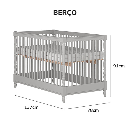 O Berço Monet Palitado Greige é multifuncional 3 em 1. Traz um design que une o estilo clássico, sofisticado e atemporal. Sua cabeceira e peseira palitadas conferem um visual elegante e acolhedor, adicionando charme ao móvel. Os pés torneados em madeira garantem sofisticação, enquanto a grade palitada une segurança e delicadeza. Ideal para um quarto de bebê moderno e elegante, seu estilo versátil combina perfeitamente com diferentes decorações, sendo adequado para meninos e meninas. Características: