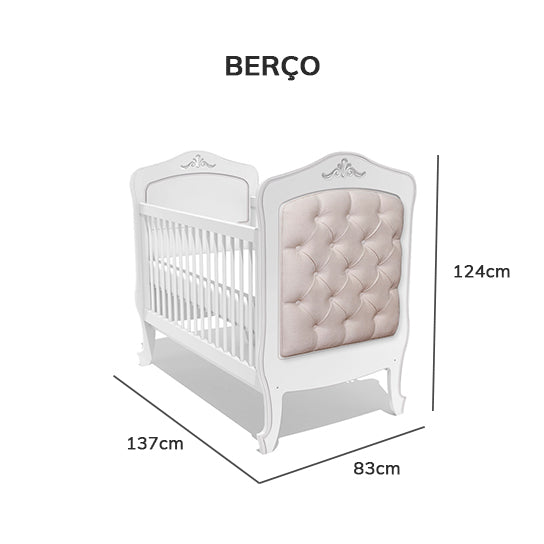 Berço Nóbile Branco Provençal com Capitonê Bege