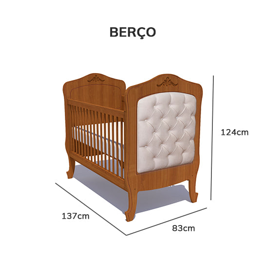 Este berço faz parte da Linha Nóbile, com estilo clássico e sofisticado.