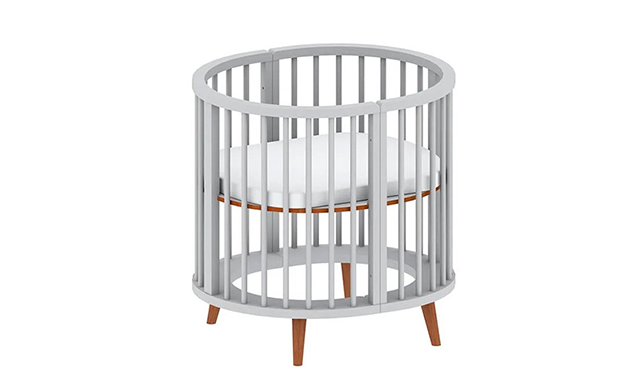 Berço Oval Slim 4 em 1 Cinza com Pé Madeira
