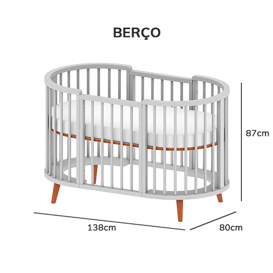 Este Berço faz parte da Linha Oval Slim, com estilo moderno e design clean.