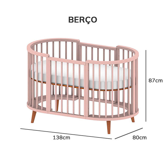O Berço Oval Slim 4 em 1 Rosa com Pé Madeira é certificado pelo inmetro e tem um design oval, clean e moderno, podendo ser usado para quarto de menina ou menino. Ele pode ser transformado em mini berço, berço, mini cama e em uma linda mesa e poltronas para estudo, acompanhando o bebê em todas as suas fases!