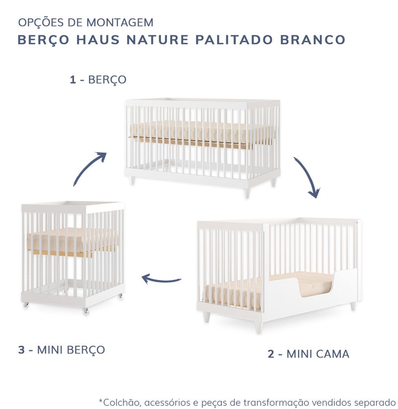 * Para transformar o Berço em Mini Cama é necessário comprar a Grade de Transformação.