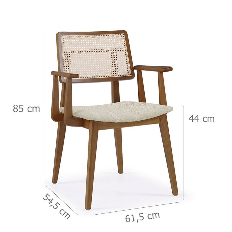 A Cadeira Paris Com Braço Palha Natural Nogueira Cru possui design harmônico com linhas retas, produzida em madeira maciça de Tauari que traz durabilidade e resistência. É perfeita para diferentes estilos de sala de jantar, deixando o ambiente ideal para receber convidados e viver momentos especiais com família ou amigos. Características :