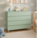 A Cômoda de Bebê Nature Verde Jardim 110cm tem linhas retas com design boho chic. Pode ser usado para quartos de menino e menina com um estilo moderno ou vintage. Possui: