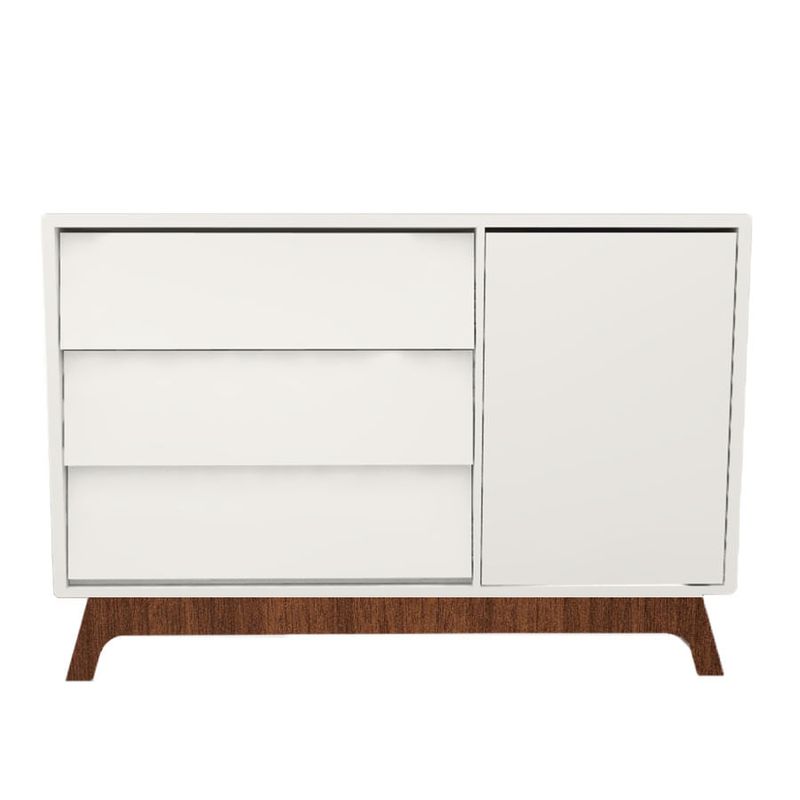 A Cômoda de Bebê Raika Com Porta Branco e Pé Mel tem um design clean que permite ser usado para quartos de menino e menina com um estilo mais moderno e sofisticado. Possui