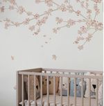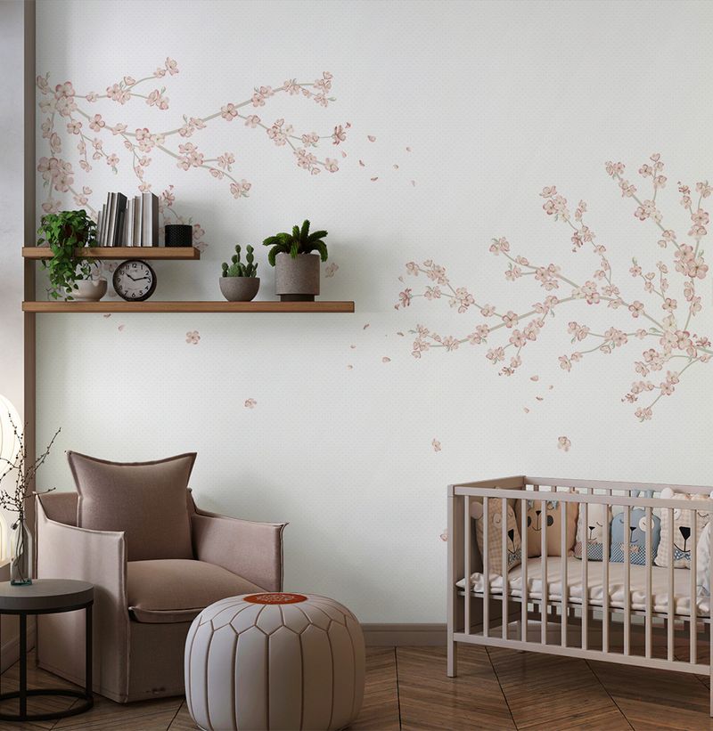 O Mural Floral Galhos de Cerejeira possui fundo em poá e flores de cerejeira em tons de rosa. Ideal para transformar e decorar o ambiente.