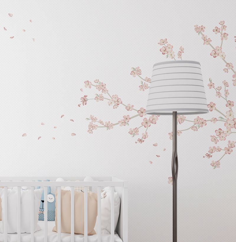 O Mural Floral Galhos de Cerejeira possui fundo em poá e flores de cerejeira em tons de rosa. Ideal para deixar o ambiente lindo e encantador.