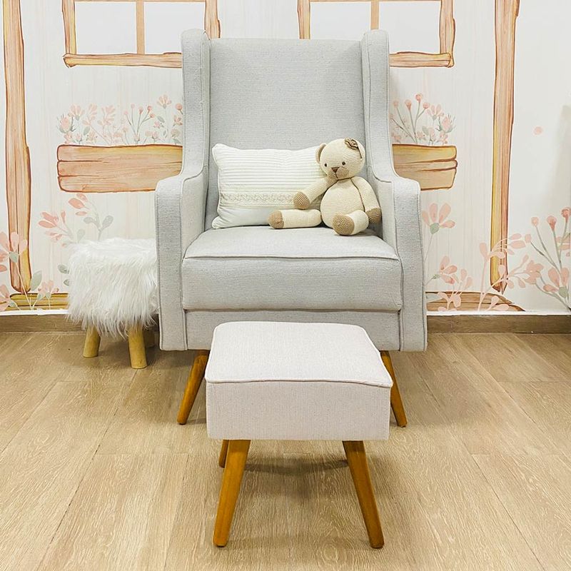 A Poltrona Viena com Puff é versátil, moderna e oferece um conforto inigualável na hora da amamentação. Seu formato é desenvolvido para acomodar o corpo dos pais de maneira uniforme e o apoio dos braços na altura ideal ao amamentar, aumentando o bem estar dos pais e do bebê. A poltrona é: