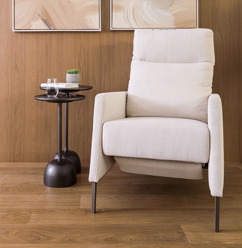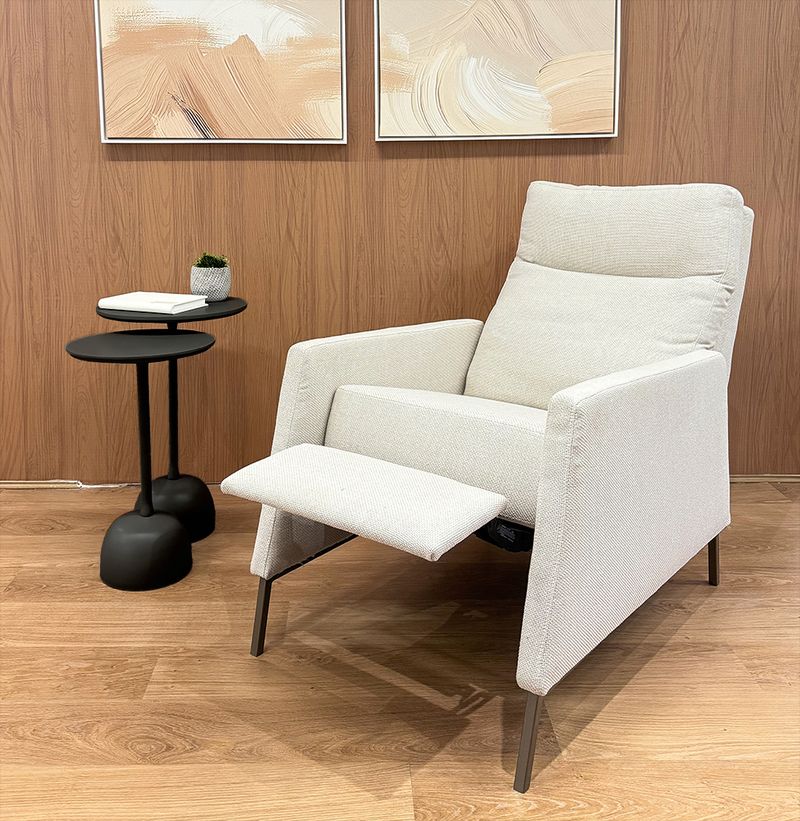 A Poltrona Square Personalizada combina design moderno e conforto. O estofado em tom claro transmite leveza ao ambiente, enquanto a base metálica garante modernidade e durabilidade ao móvel. Seu encosto reclinável transforma qualquer espaço em um verdadeiro refúgio de aconchego e estilo. Versátil e elegante, é a escolha perfeita para compor diferentes ambientes. Características: