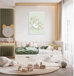 O Quadro Infantil Ganso Família Secrets Verde possui fundo verde com folhagens, flores e ilustraçãod e ganso. Quadro exclusivo Lilibee. Ideal para transformar e decorar o ambiente, deixando-o ainda mais lindo!