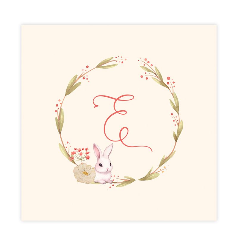 Quadro Infantil Guirlanda com Inicial Secrets Bege - Personalizado possui fundo bege com guirlanda de folhas, flores e coelho aquarela com inicial centralizada. Ideal para transformar e decorar o ambiente, essa peça deixará o quarto da bebê ainda mais belo e autêntico!