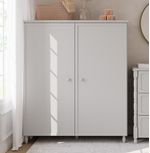 Roupeiro Monet Greige 2 Portas com um visual clássico e delicado, traz sofisticação e charme para o quarto do bebê. Seus pés torneados e acabamento branco reforçam o estilo da linha, perfeito para compor ambientes aconchegantes e elegantes, seja para quarto de meninos ou meninas. Características: